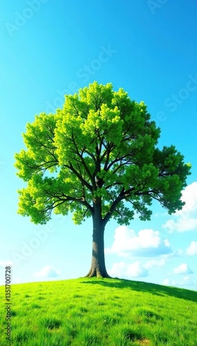 © Withun, Fototapeta premium Majestic tree against clear blue sky on white background, nature, calm, peaceful