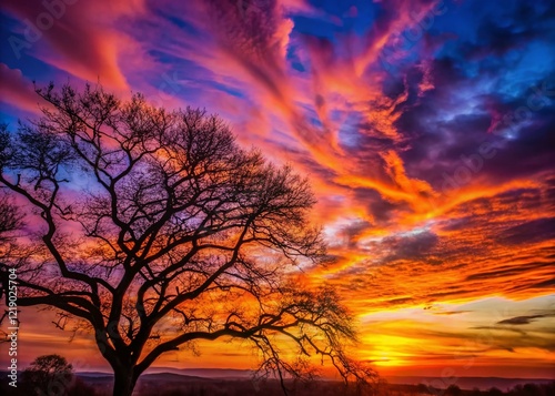 © Sirinporn, Fototapeta premium Majestic Tree Branch Silhouette at Sunset - Aerial View Stock Photo