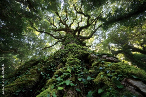 Fototapeta premium Majestic tree covered in moss reaching for the sky