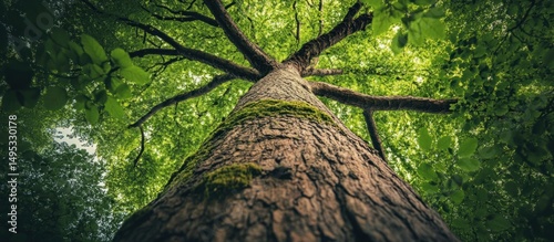 Naklejka premium Majestic tree, forest canopy, nature, spring leaves, environmental backdrop