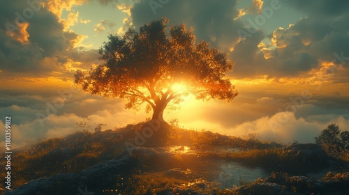 © Juan, Naklejka premium Majestic tree glowing at golden hour
