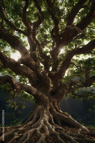Obraz premium Majestic Tree in Sunlight Rays