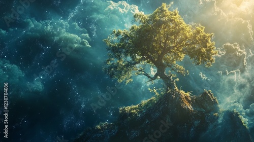Fototapeta premium Majestic Tree on a Cliff Underneath a Mystical Sky