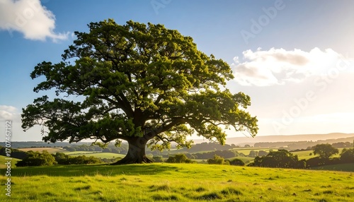 © taeh, Obraz premium Majestic tree on a grassy hill under a golden sky