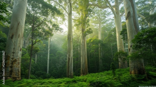 © Nutchapol, Fototapeta premium Majestic trees in a tranquil forest setting.