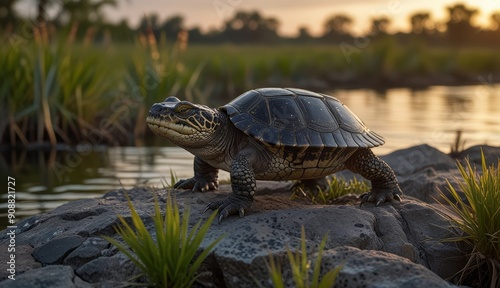 © Василь Тігай, Obraz premium Majestic Turtle by Serene Waters