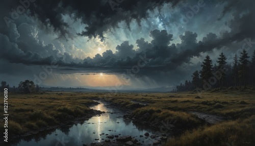 Fototapeta premium Majestic twilight envelops rolling hills under dramatic skies