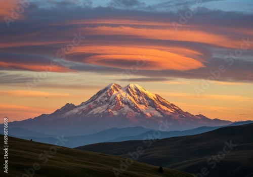 © homan, Fototapeta premium Majestic twin peaks at sunrise with clouds.