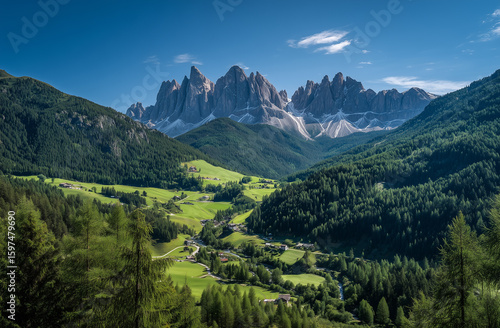 Fototapeta premium Majestic Val di Funes with Odle Peaks and Lush Valleys