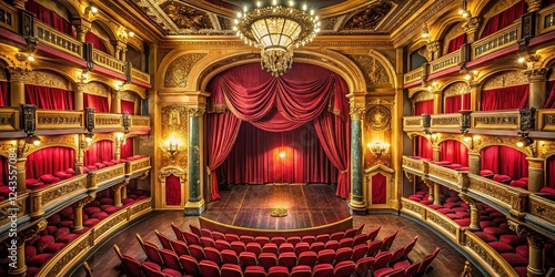© Man888, Obraz premium Majestic Velvet Stage Curtains: Elegant Theater Drapery Aerial View