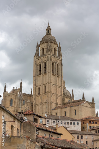 Fototapeta premium Majestic view at the iconic spanish gothic building at the Segovia cathedral,...