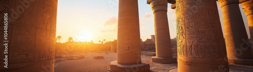 © Mnt, Obraz premium Majestic view of ancient columns under a vibrant sunset, casting beautiful shadows across the historic landscape.