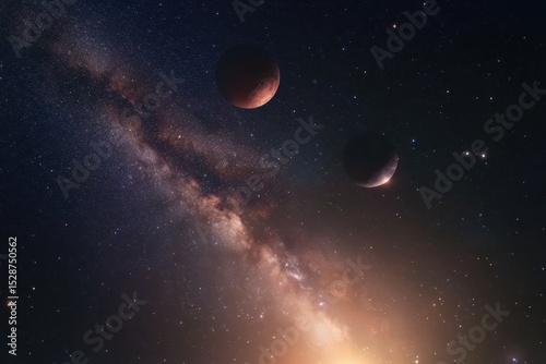 Obraz premium Majestic view of planets and the Milky Way in the expansive starry night sky,...