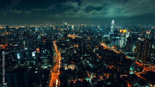 © Kristian, Fototapeta premium Majestic view of urban landscape under starlit skies.
