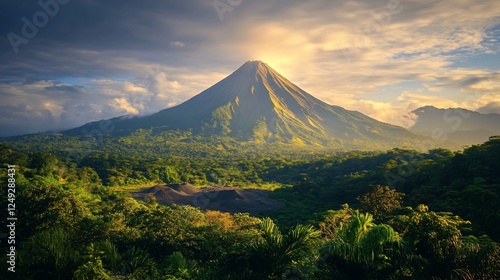 Fototapeta premium Majestic Volcano Sunset, Tropical Landscape, Travel Poster