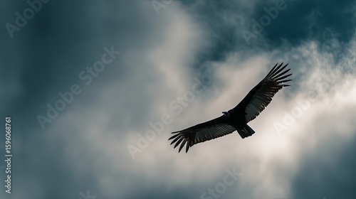 Fototapeta premium Majestic vulture soaring elegantly against a dramatic cloud-filled sky.