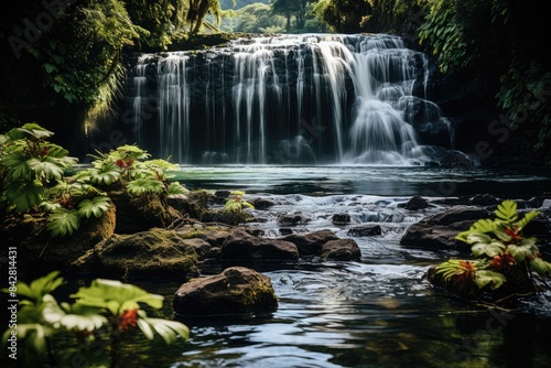 © JONATAS, Obraz premium Majestic waterfall at the exuberant Akaka Park, Hawaii., generative IA