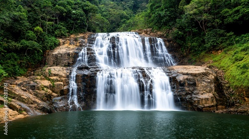 © VISA-3UK, Fototapeta premium Majestic waterfall cascade lush rainforest nature photography serene environment wide-angle view pristine beauty concept