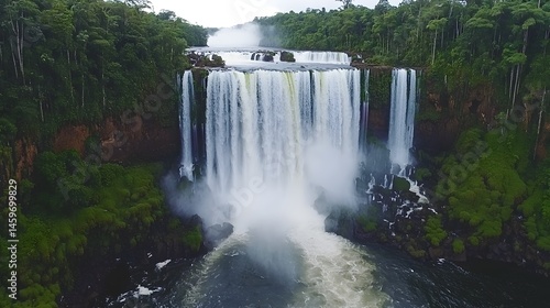 Fototapeta premium Majestic waterfall cascading down a rocky cliff face surrounded by lush...