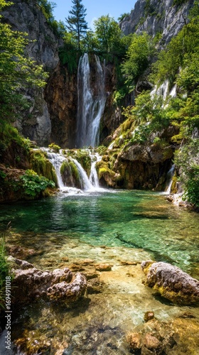 Naklejka premium Majestic waterfall cascading into a tranquil pool