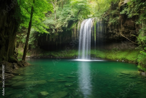 Obraz premium majestic waterfall cascading into a tranquil pool of water, created with...