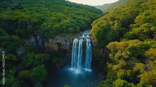 © MUCHIB, Fototapeta premium Majestic Waterfall Cascading Through Lush Green Forest