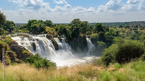 © Biancaart, Fototapeta premium Majestic Waterfall Cascading Through Lush Green Landscape
