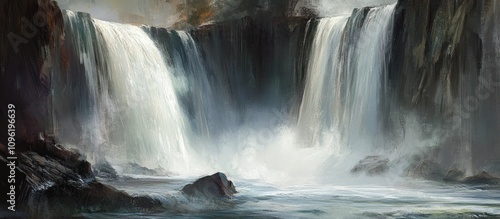 Fototapeta premium Majestic waterfall cascading with powerful force through rocky landscape...