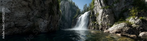 © HDR Image Creator, Obraz premium Majestic waterfall in nature hdr 360 degrees view hdri landscape