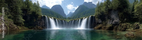 © Ayou.Y, Fototapeta premium Majestic waterfall panorama nature landscape hdr 360 degrees view