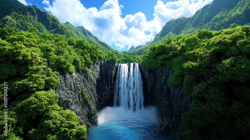 Fototapeta premium Majestic Waterfall Surrounded by Lush Greenery
