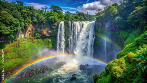 Obraz premium Majestic waterfall surrounded by lush greenery