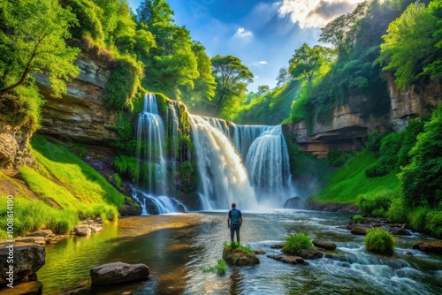 © Danicha, Naklejka premium Majestic Waterfalls Cascading Through Lush Greenery in the Heart of Iowa's Scenic Landscape