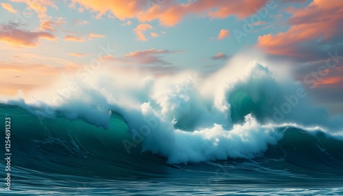 © Andini, Fototapeta premium Majestic Wave at Sunset: A Symphony of Ocean and Sky