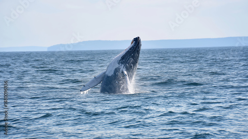 © Chris, Fototapeta premium Majestic Whale Breaching: A Thrilling Marine Life Adventure in the Blue Sea