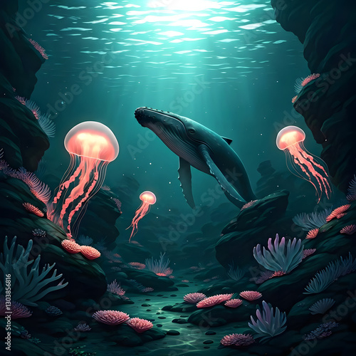 © Rizwan Ahmad, Fototapeta premium Majestic Whale in the Deep Ocean