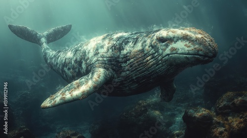 © Muamanah, Obraz premium Majestic Whale in the Deep Ocean: A Breathtaking Underwater Encounter