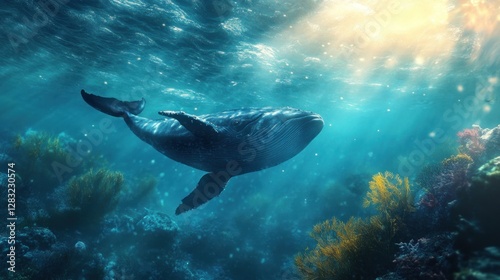 © ita, Obraz premium Majestic Whale in Underwater Paradise: A Symphony of Blue