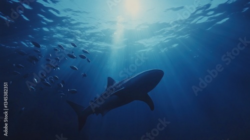 © Ahmad, Fototapeta premium Majestic Whale Shark Underwater Encounter: A Symphony of Blue