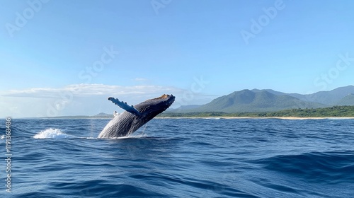 Fototapeta premium Majestic Whale Splashes in the Ocean