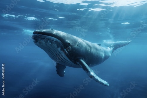 © Chiving, Fototapeta premium Majestic Whale Swimming Gracefully in the Ocean