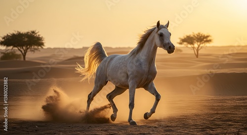 © fantastic, Obraz premium Majestic White Arabian Horse Galloping in the Desert