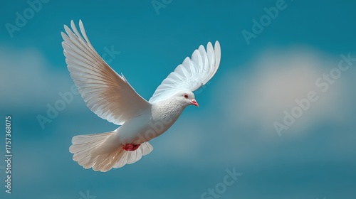 Obraz premium Majestic white dove soaring gracefully through a clear blue sky, symbolizing...