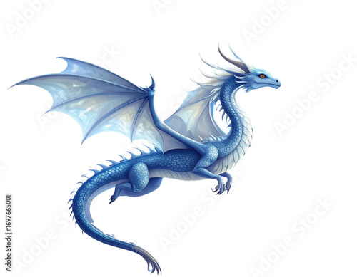 © Mostafijur, Obraz premium Majestic white dragon flying in a starry night sky with a full moon isolated on transparent background