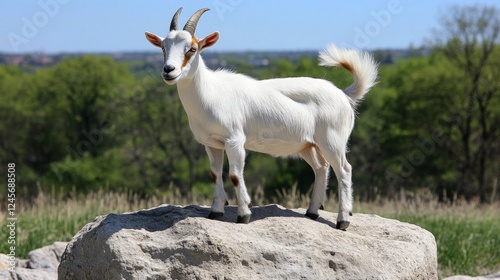 © Yeivaz, Fototapeta premium Majestic White Goat on a Rock