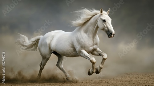 © wikkie, Obraz premium Majestic White Horse Galloping Across the Field