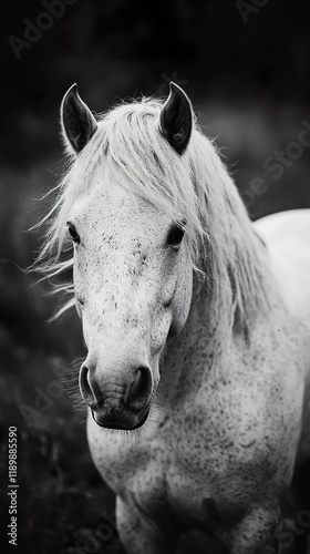 Obraz premium Majestic White Horse Portrait: A Stunning Monochrome Image