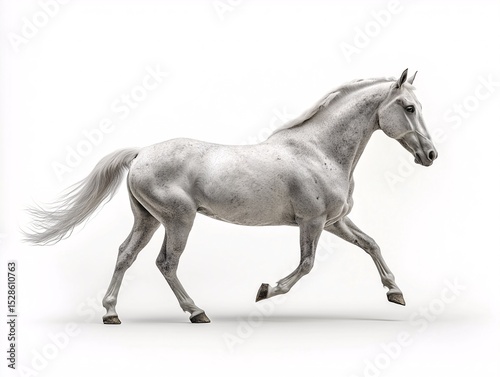 © niroshan, Obraz premium Majestic White Horse Silhouette in Motion. Stunning Studio Shot of a Graceful Quarter Horse Cantering - A Fine Art Photography Piece for Interior Design and Equestrian Enthusiasts