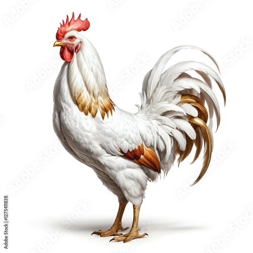 © ลลิดา ไชยศรีษะ, Fototapeta premium Majestic White Rooster with Golden Accents