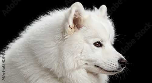 Fototapeta premium Majestic White Samoyed Dog Profile Fluffy Fur Canine Portrait